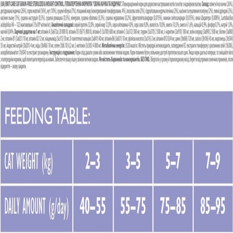 Сухий корм для стерилізованих котів і котів з надмірною вагою Brit Care Cat GF Sterilized Weight Con